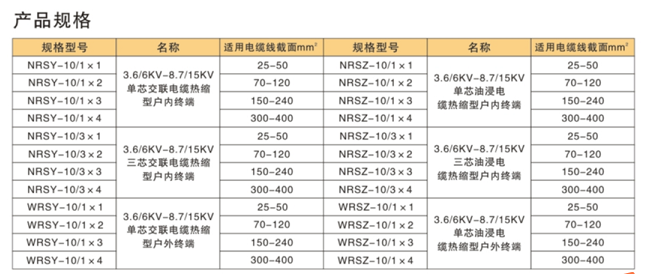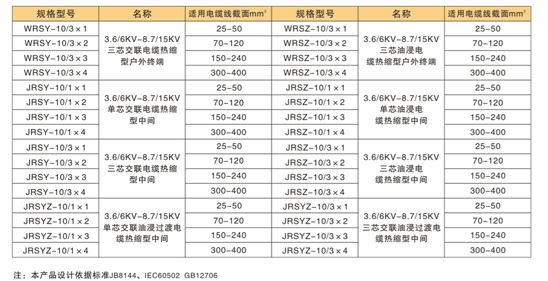 分為0.6/1KV、3.5/6KV、8.7/15KV、12/20KV、36/35KV電力電纜附件產(chǎn)品。